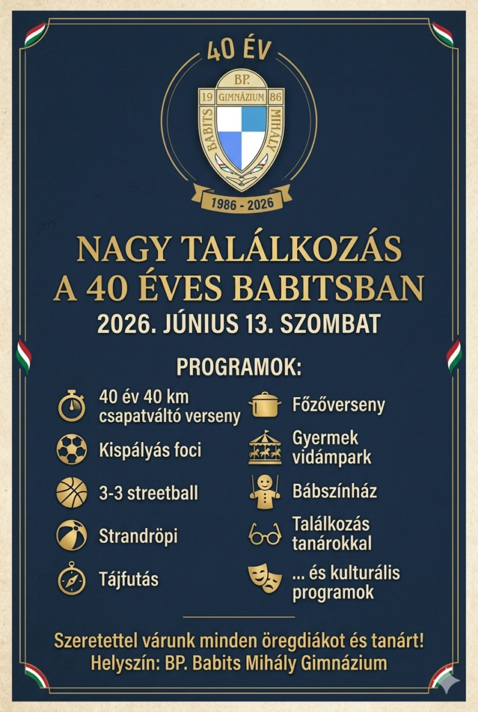 Babits Mihály Gimnázium — 2026 Diáknap Állatbarát gimnázium — Különleges élmények A Babits Mihály Gimnázium diákjai egy igazán különleges diáknapot töltöttek el — hűen az állatbarát gimnázium büszke hírnevéhez. Négylábú barátainkat kerestük fel, hogy közelről is megismerjük és segíthessük őket. Tovább…